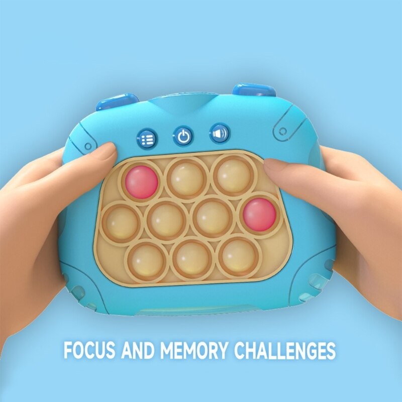 Experimenta la emoción de golpear las burbujas del adorable juguete mientras navegas a través de una serie de desafíos que te harán pensar y estrujarte los sesos. Con sus controles intuitivos la Consola Quick Push Game garantiza horas de juego inmersivo. Mejora tus reflejos, aumenta la coordinación mano-ojo y potencia tus habilidades cognitivas mientras disfrutas de cada momento.
